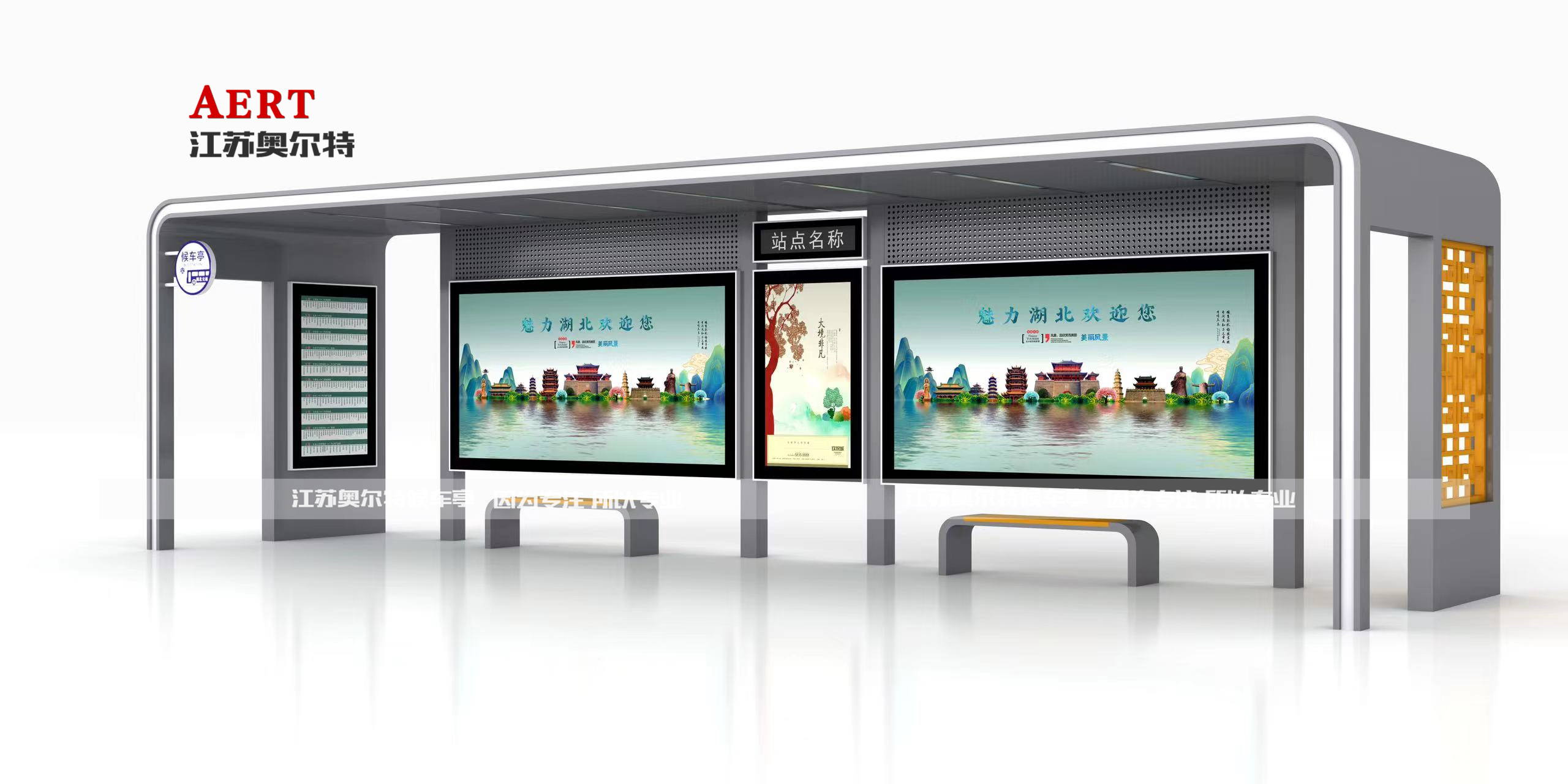 | 候車亭尺(chǐ)寸 | 一大一小尺寸:寬7米,高2.9米,寬1.5米 二大一小尺寸:寬12米,高2.9米,寬1.5米 三大一(yī)小尺寸:寬17米,高2.9米,寬1.5米 標(biāo)準大燈箱尺寸:寬3.65米,高1.8米 標準小燈(dēng)箱尺寸:寬(kuān)1.2米,高1.8米 注:可根據客戶需求進行定製,采用(yòng)模塊化設計,組合方式靈活多(duō)變。 |