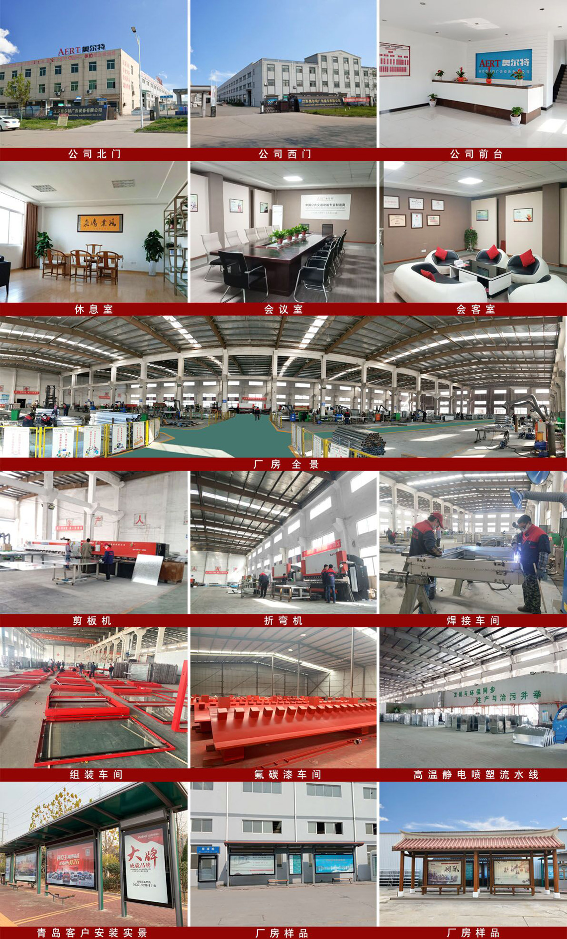 公司擁有設計(jì)、生產能力,有專業產品設計、工(gōng)藝(yì)研發工程師20人,現(xiàn)有生產麵積40000平方米,員工300餘人,已(yǐ)經形成以公(gōng)交候車亭為主線的專業團隊。公司先後引進了(le)一批最新型的數控(kòng)折彎機、數(shù)控剪板機、數控等離(lí)子切割機、數控衝床等加工設備和噴塑流水線,滿足了不同規格的(de)鋼結構、不鏽鋼和鋁型材加工工藝和質量(liàng)的需(xū)求。