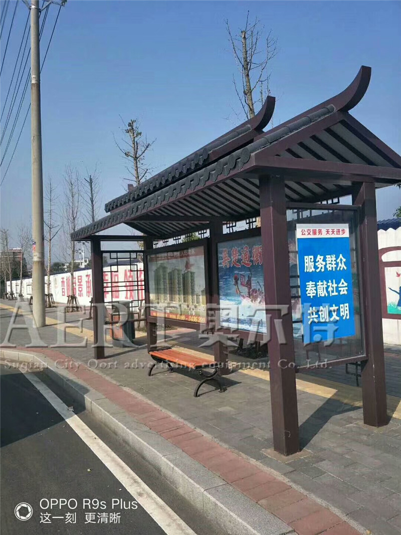 仿古候車(chē)亭 ,不(bú)止是對當地文明的一種維護,而更是對我國獨特地域文化的一種維護(hù),公交候車亭的個性,規劃和挑選,能夠帶給人(rén)不一樣的視覺效果。宿遷奧爾(ěr)特候車亭廠家都可以給每個城(chéng)市進行量身訂造。特(tè)別是仿古(gǔ)候車亭 外(wài)觀的規劃和棚頂的複古(gǔ)瓦磚都可以給人一種古都的意境。候車亭的個性,規劃和挑選。不(bú)僅人性化,而且(qiě)還(hái)有一種入鄉隨俗的氣息,形成一個城市的文明,能夠把它的文化凸顯出來,給城市增添色彩。