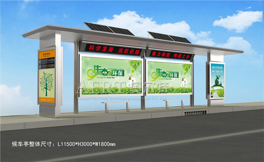 太陽能作為新能(néng)源之一,“取之(zhī)不盡,用之不竭”的特性被(bèi)人們推崇。在實際的運用上,太陽能也被應用到候車亭中。廣告燈箱憑仗共同的規劃理念為廣告職業開辟出一個全新的範疇。不隻具有廣(guǎng)告原有的宣揚作用,還點亮了都市、小區的夜景日子。在不需(xū)要架電線、電纜的一起為咱(zán)們的(de)日子添加了一處異樣的景(jǐng)色。選(xuǎn)用太陽能(néng)供電係統,光源選(xuǎn)用進口金屬鹵化物燈,單片機充放電操控,裝備直流輸出的高頻節能電子式鎮流器裝備12V免保護蓄電池。有(yǒu)輸出(chū)過(guò)載(zǎi)保護,輸(shū)出短路保護,輸入反接(jiē)保護,過充過放主動斷電保護等功用(yòng)。太陽(yáng)能廣(guǎng)告燈箱還具有發光效率高,打光均勻,具有(yǒu)光控或時控(kòng)主動開關的功用。