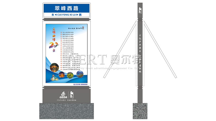 路名牌燈箱為方便市(shì)民出行、導示、辯分方向等,在道路兩旁或綠化帶上建設的交通設施。由於城(chéng)市公交的日益發達,路名(míng)牌(pái)燈箱已發(fā)展成為城市一個不(bú)可或缺的重要組成部分,設計精美的(de)路名牌燈箱也成為城市一道美麗的風景。一般路名牌燈箱主要由鍍鋅鋼板或不鏽鋼材料製作,由可視視窗和頂部路牌部分組成,頂部路牌一般(bān)多為國家標準(zhǔn)色底反光膜,可視視窗即為廣告視(shì)窗部分(fèn),可發布城市(shì)資(zī)訊、新聞熱點、導購等信息,也為投資商(shāng)帶來可觀的廣告經(jīng)濟效益(yì),成為道路廣告投入的首選。