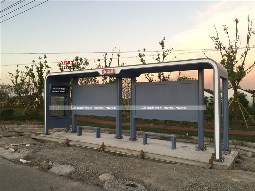 常見的(de)城市候車亭尺寸大小說明: 尺寸設計一般整高為2.6-2.8米,頂棚寬約(yuē)1.6-2米,長約5-8米。在我國(guó), 公交候車亭設計標(biāo)準規定車長不大於6米(mǐ)及車寬不大(dà)於1.8米的車(chē),規範車與車之間間距為不小於(yú)0.5米,車與牆、車位端之間間距不小於0.5米。候車亭的長度短應按同時(shí)停靠兩(liǎng)輛(liàng)車布置(zhì),長(zhǎng)不(bú)應超過同時停靠4輛車的長度,否則(zé)應(yīng)分開設置。 車長大(dà)於6米不大於8米,車寬大於1.8米不大於2.2米的話,車與車之間間距不小於(yú)0.7米(mǐ)等。回車路段的相應規範是滿足一輛(liàng)車一次性回轉(zhuǎn)的需要,這實際(jì)上為不同類型的停車場提(tí)供了不同的尺寸鬆動。候車亭高度宜采用0.15m~0.20m,候車亭(tíng)寬度不宜小於2m;當條件受限時,站台寬度不得小於1.5m。若是道路交叉(chā)口附近(jìn)的車站宜(yí)安排在交叉口出口道一側,距交叉口出口緣石轉彎半徑終點宜為80m~150m。此外, 公交候車亭(tíng)應結合常規公交規劃、沿線交通需求(qiú)及城市軌道交通等其他(tā)交通站點設(shè)置。城區停靠(kào)站(zhàn)間距宜為400m~800m,郊區停靠站間距應(yīng)根據具體情況確定。