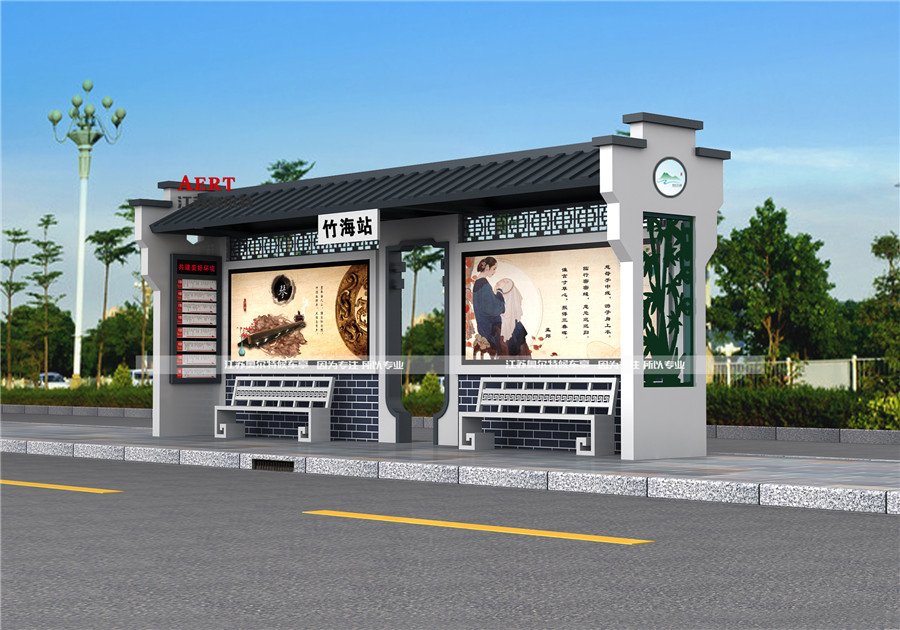 仿古候(hòu)車亭因古樸典雅的色調、層巒疊嶂的(de)設計(jì)以及特色的鏤空雕花裝飾烘托出獨(dú)特的古典氣息,使它矗立(lì)在鋼筋混凝土的現代都市散發著(zhe)別具特色的曆史韻味。仿古木紋(wén)候車亭結合當地曆史名臣、著(zhe)名書(shū)法家顏真卿特色定製,兩箱體設計頗具氣勢,灰色磚(zhuān)牆、棕白色調,頂部(bù)采用木紋鋁塑板UV打印技術將顏真卿書法大作展示的淋漓盡致,毛筆立柱點(diǎn)睛之筆,猶如現場揮毫之作,整體烘托(tuō)出濃鬱文化底蘊,將地方特色展示無餘。近年來,隨著各地政府對城市建設(shè)的關注,各項公共基(jī)礎設施建設勢頭迅猛,公交候車亭的建設(shè)也在加大力度。不同文化底蘊、不同地域特色、不同設計造型的候車亭不斷推陳出新。仿古候車亭結合現代元素作(zuò)為一股清流逐漸運用到越來越多的城市,打造出(chū)別樣風情。
