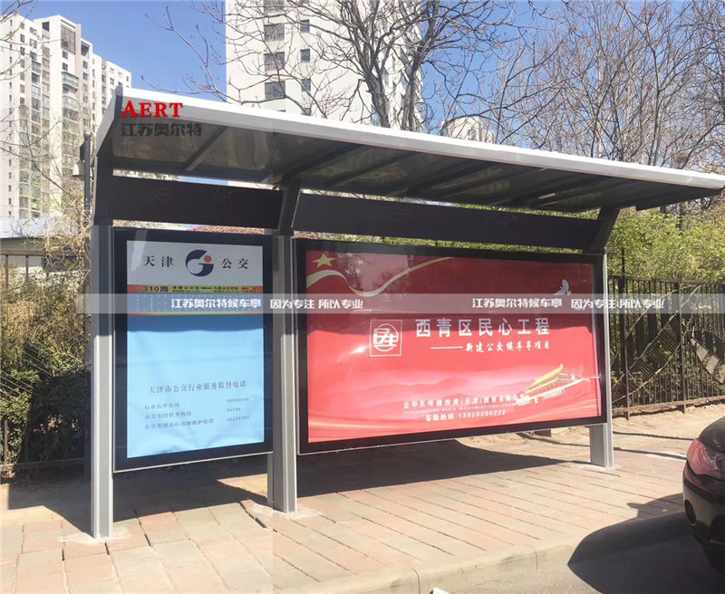 分享到   [7-15]湖南永州型材款鄉鎮公交候車亭燈箱公交停靠站招呼站巴士(shì)停靠站候車廳案例