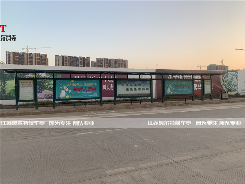 梅州,廣東省轄(xiá)地級市,位於廣東省東北部(bù),地處閩粵贛三省交界,東部與福建省龍岩和漳州接壤,南部與潮州、揭陽、汕尾毗鄰,西部(bù)與河源接壤,北部(bù)與江西省贛州(zhōu)相連。轄梅江區、梅(méi)縣區、平遠縣、蕉(jiāo)嶺縣、大埔(pǔ)縣、豐順縣(xiàn)、五華縣,代管興寧市。總麵積15864.50平方千米。2017年末戶籍人口550.11萬人。此次(cì)廣(guǎng)東梅州定製的加長候車亭,由4組大燈箱 2組小燈箱組成,全長20米,足以(yǐ)滿足上下班超(chāo)大人流量使用,簡約款公交候車亭主體材質采用鍍鋅(xīn)鋼(gāng)板製作,外觀簡約而不簡單,超大廣告視窗,既給行人帶來了方便又宣傳了廣告的同時美化了你的城市。鄉鎮款公交站台外觀采用高溫靜電噴塑防鏽處理,整體耐用性得到全麵提升,使用壽麵達到10年以上。江蘇国产亚洲熟妇在线视频候車亭廠家作為江蘇宿遷地區專業研發生產候車亭的廠家,擁有專業創(chuàng)意設計(jì)團隊,善於挖掘城市地域文化特色,為城市定製適合的候車亭。
