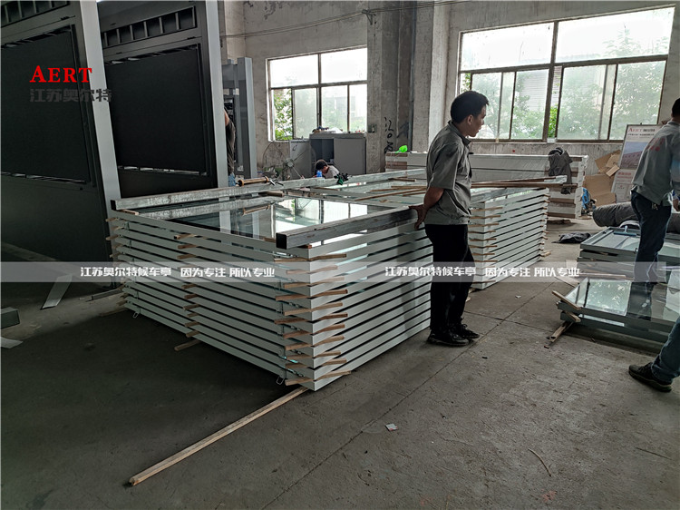 外(wài)箱(xiāng)玻璃(lí)打膠凝固晾幹中