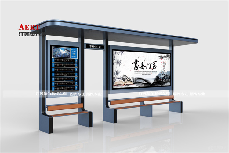 公交候車亭作為城市公共設施(shī)的重要組(zǔ)成部分,在城市麵貌中扮演著重要角色,隨著國內城市化(huà)進程的加速發展,人們 對公共設施的(de)要求也在提升,通過引入公交候車亭人(rén)性化與地域文化設計元素來提升城市設計品位,此款站台為德清定製站台,現(xiàn)代元素中增加了木紋仿古元素,立柱與頂棚才用黑色跳色處理,讓候車亭不再單調通(tōng)俗。