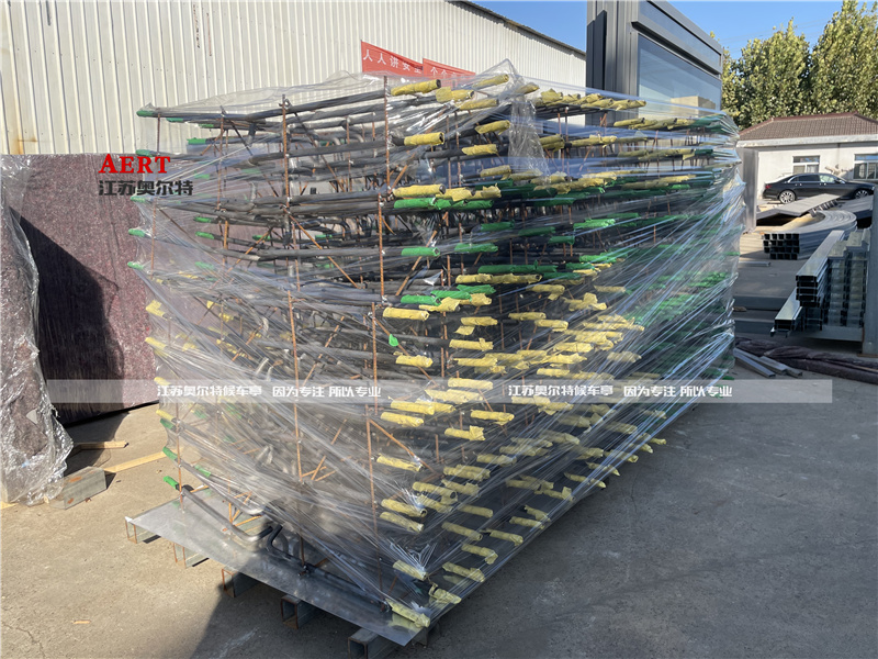 浙江嘉興人字型木紋漆轉印公交候車亭發貨中