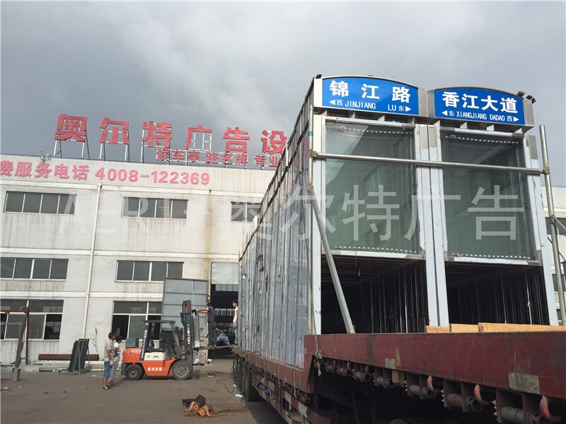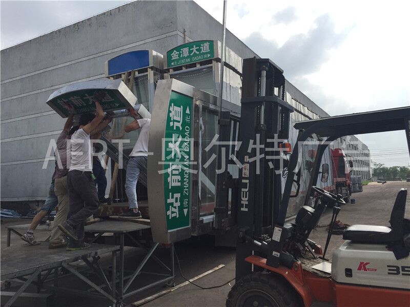 江西贛州200台不鏽鋼(gāng)指路牌燈箱第(dì)三批裝車發貨