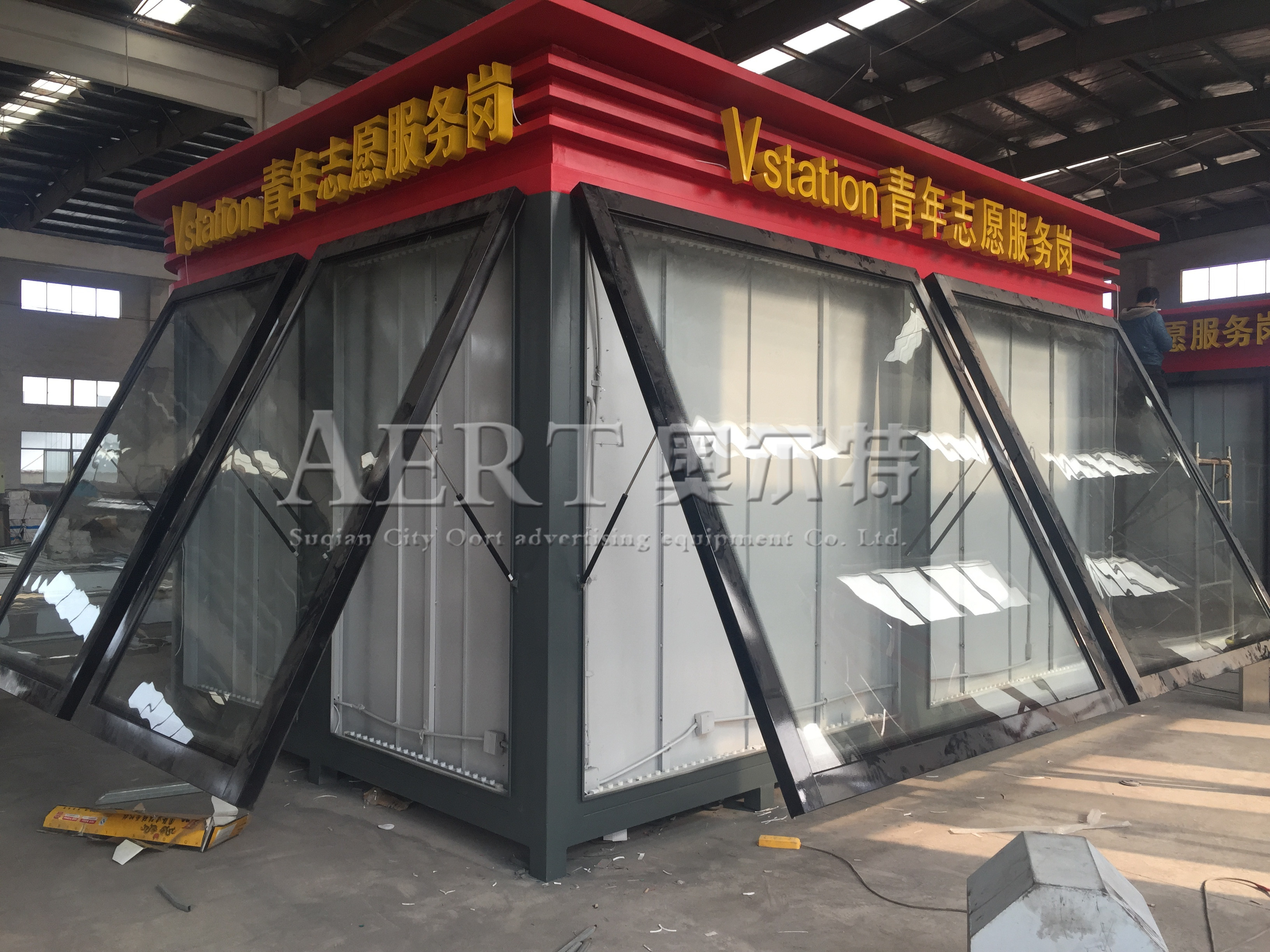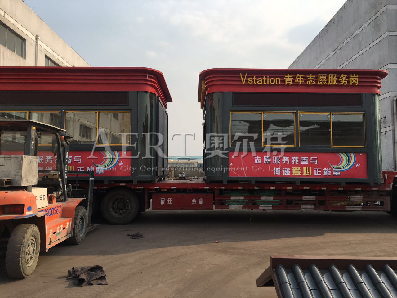 宿遷国产亚洲熟妇在线视频(tè)廣告設備有限公司為山東濰坊製作的(de)批定製款崗亭裝車發(fā)貨。