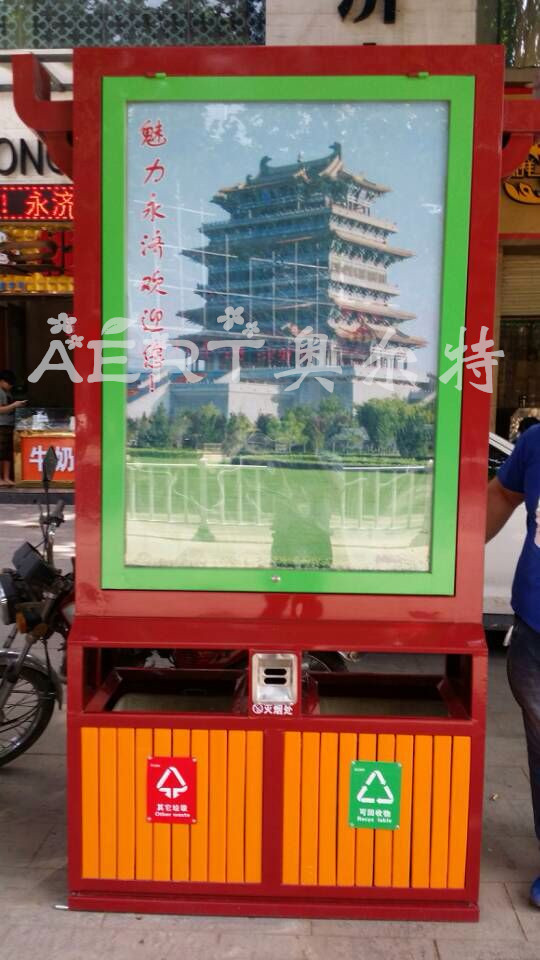 遼寧酒紅色廣告垃(lā)圾箱發貨啦(lā)
